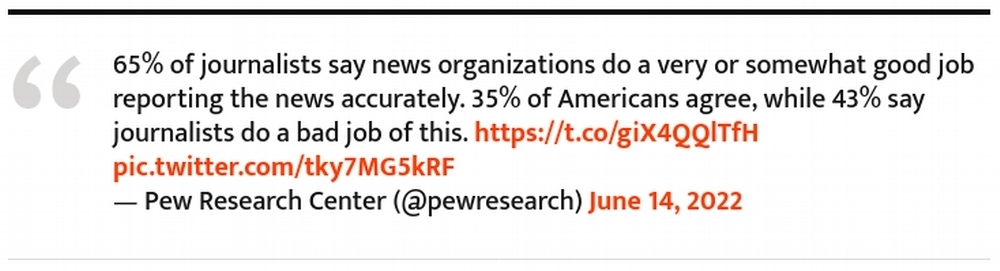35 prosent av amerikanerne er enige, mens 43 prosent sier journalister gjør en dårlig jobb med det.