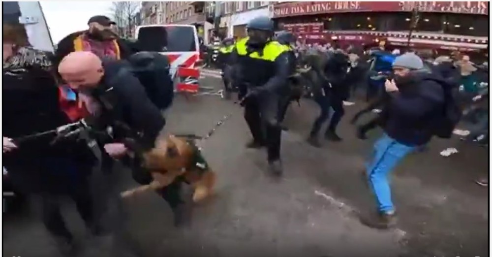 Forferdelige scener skjer i Amsterdam, Nederland – Det var en stor og fredelig demonstrasjon med kanskje så mange som en million deltakere i går, og så skjer dette tilslutt mot demonstrantene: – Der er de nå godt i gang og politiet der viser nå sitt sanne jeg… Hvilke mennesker er det som tar slike jobber? (Klikk på bildet under for video)