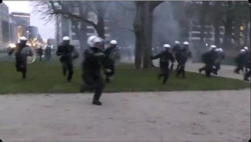 I Brussel demonstrerer politistyrkene for alvor den nye «Covid Politi Staten» (Klikk på bildet under for video)