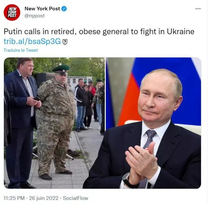 Den 26. juni publiserte den britiske tabloiden The Daily Star en artikkel som hevdet at «en overvektig russisk pensjonert general, 67, har blitt sendt for å kjempe i frontlinjen i Ukraina»
