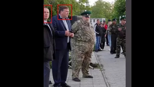 Det belgiske faktasjekkingssenteret VRT identifiserte mannen til venstre i dette bildet som Dmitrij Litvinov , sjefen for kommunal administrasjon i distriktet Yelansky i Volgograd-oblasten i det sørvestlige Russland.