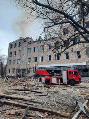 Kyiv (bilde til høyre) – en type bilde som en også kjenner så alt for godt igjen fra Donbass. Det som indikerer at dette er Kyiv, er brannbilen på bildet som er et langt mer moderne hjelpemiddel enn vi har noen steder i Donbass. (Når det snakkes om Donbass – så inkluder det begge utbryter republikkene slik dem så ut som Oblaster / fylker i 2014)