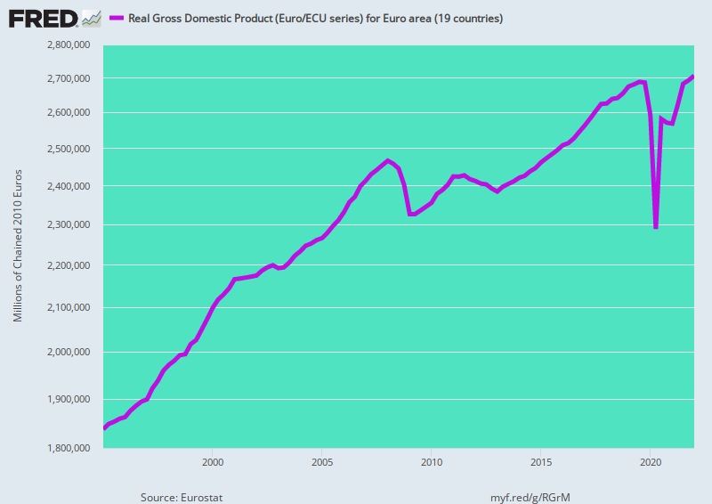 I sin analyse på InternationalMan.com kritiserer Stockman skjærende EU-politikk, men støtter den med alle fakta. Den reale veksten i bruttonasjonalproduktet har falt med 74 % sammenlignet med perioden før finanskrisen i 2008. “Den reelle vekstraten i E19-landene var bare 0,67 % per år over 14-årsperioden mellom første kvartal 2008 og første kvartal 2022, sammenlignet med 2,29 % per år i tilsvarende periode mellom 1995 og 2008.”
