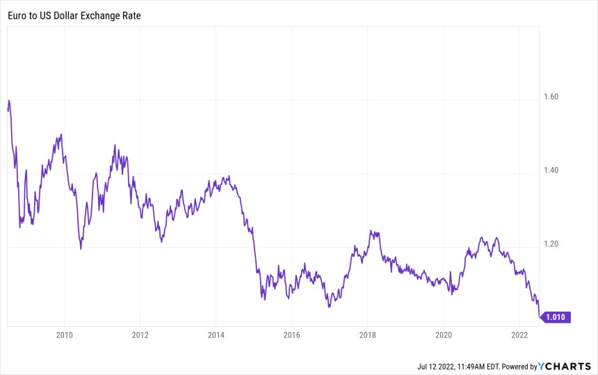 I tillegg kommer valutakursen til en permanent svekkelse av euroen, noe som vil føre til importert inflasjon. ECBs styringsrente (nylig økt til 0,5 prosent) er fortsatt godt under Feds styringsrente (1,58 prosent). «På kort sikt er det nåværende og fremtidige avviket så opprørende at det bokstavelig talt dreper eurokursen.» Bare det siste året har kursen falt 15 prosent mot dollaren, og siden den nådde toppen i midten av I 2008 har den falt mer enn 58 prosent.