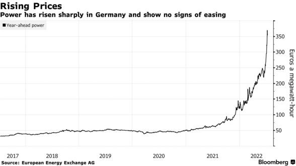 I mellomtiden steg de tyske årlige strømprisene med 19 prosent den siste uken, “de har nesten tredoblet seg i år alene og har økt mer enn syv ganger siden begynnelsen av 2021.” Som nevnt tidligere bruker jeg Tyskland som eksempel fordi de EUs sentrale medlem.