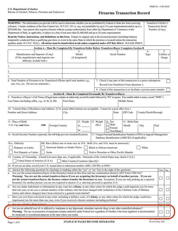 Hunter Biden, hvis avhengighetsproblemer førte til hans skilsmisse fra Kathleen Buhle i 2017 og hans utskrivning fra US Navy Reserve tre år tidligere, kjøpte ulovlig revolveren bare fem dager tidligere i en våpenbutikk i den lille byen Wilmington, Delaware. Der kom han med falske utsagn i «Firearms Transaction Record», ATF-skjema 4473, kort: Dette er et skjema på seks sider. Det må fylles ut i USA når du kjøper et skytevåpen fra en våpenforhandler.