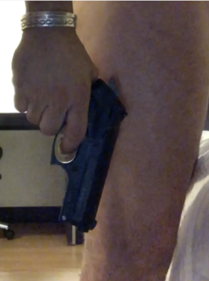 På en video som nå har dukket opp, vifter den nakne presidentsønnen tilfeldig rundt med en revolver av kaliber 38 og viser den til og med for kameraet.