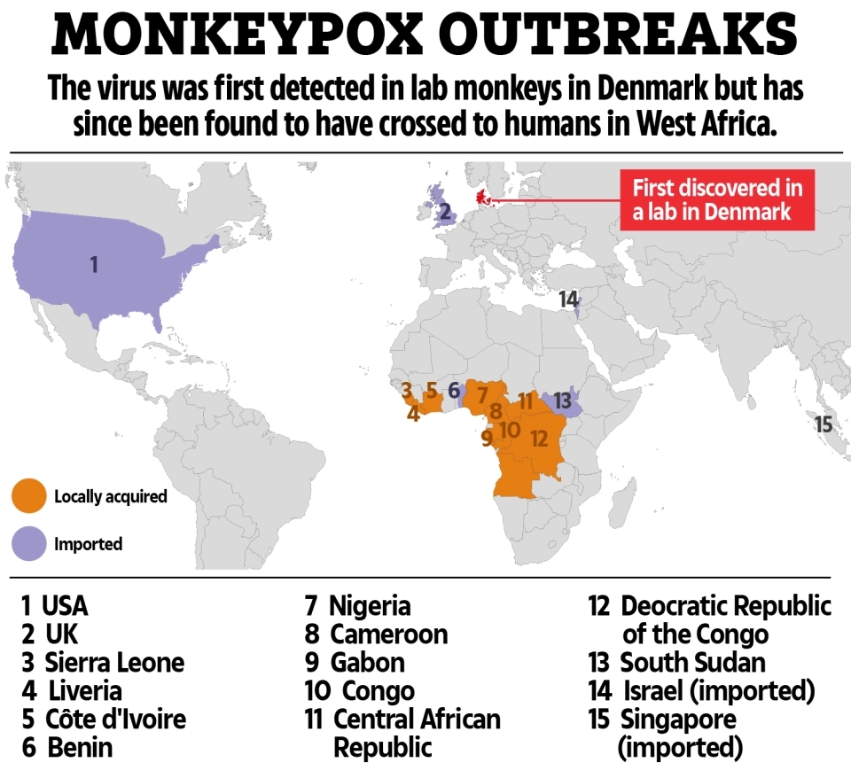 Monkeypox er altså et sjeldent virus som etterlater mennesker med rasende feber og dekket av sprutende blemmer, det ble først funnet hos dusinvis av aper i et laboratorium i Danmark for mer enn 60 år siden.