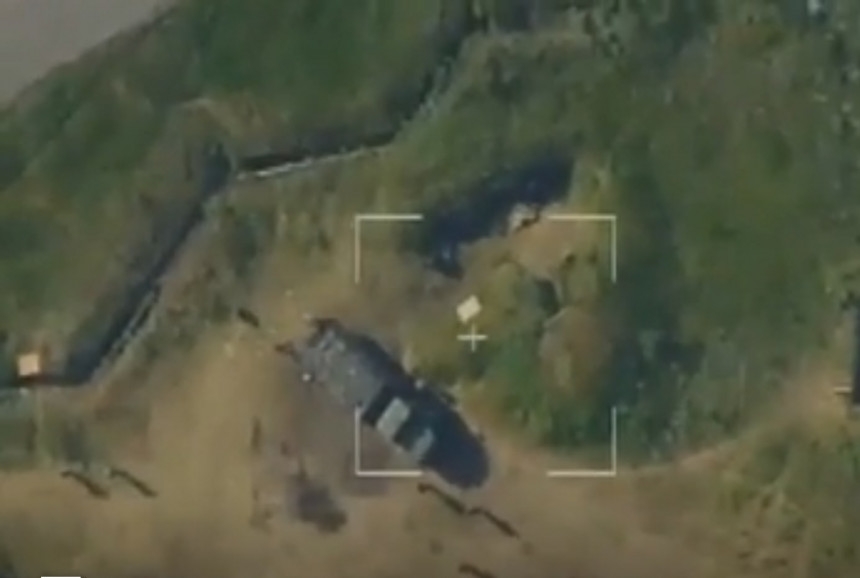 Et russisk artilleriangrep kan sees på video imens de tar ut to platoner som utplasserer sine britisk-designede M777-haubitser med et presisjonsangrep, komplett med ammunisjon. M777 er en britisk 155 mm haubits som kan skyte opptil 30 kilometer avhengig av ammunisjonen.